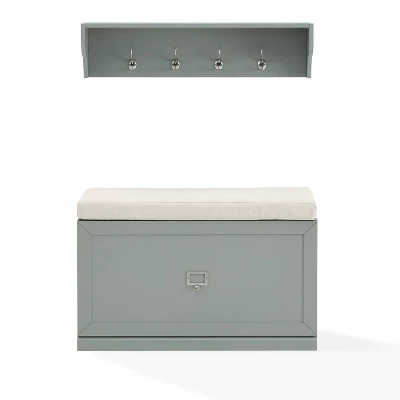 Even the smallest entryway needs a landing zone for jackets, shoes and book bags. Look no further than the Harper 2pc Entryway Set. This set combines an open shelf with four double hooks and an entryway bench with a large storage drawer. The open shelf is ideal for décor or small storage baskets, while the entryway bench offers a cushioned seat just right for sitting down to slip off your shoes at the end of the day. Featuring label holder hardware, the storage drawer can be customized with personal labels. The Harper 2pc Entryway Set can pair modularly with other items in the collection and create the look of genuine built-in storage.
