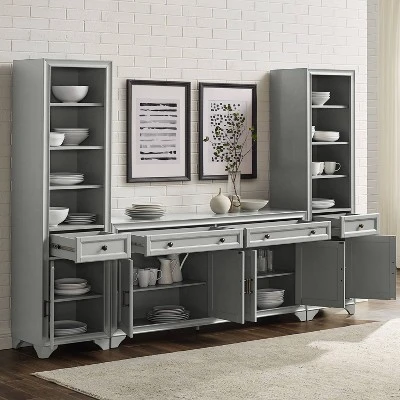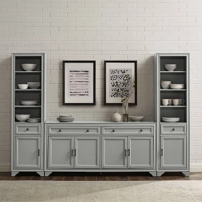 Whether you love a traditional look or a modern farmhouse vibe, the Tara 3pc Sideboard and Bookcase Set brings stylish organization to your home. Ready to store a variety of household items, this set is a fabulous addition to a dining room or home office. The sideboard features two wide full-extension drawers and two large cabinets with adjustable shelves. Each bookcase has a full-extension drawer, plus three open, adjustable shelves, making the Tara 3pc Sideboard and Bookcase Set a great option for home storage. OVERALL PRODUCT DIMENSIONS: 97”W X 15”D X 67.63”H