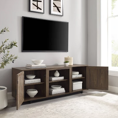 No need to sacrifice style for storage with the Silas 58” Low-Profile Tv Stand. Featuring modern elements like faux vertical slats and an all-metal frame base, this entertainment center brings mid-century vibes wherever it goes. With adjustable shelving in the cabinets and center compartment, this TV stand offers flexible space for media components. Ideal for TVs up to 65”, the Silas TV Stand is ready to class up any room.