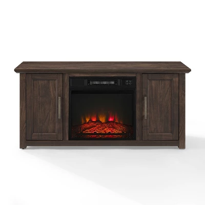 Cozy up for a relaxing evening with the Camden Low Profile TV Stand and fireplace. This TV stand looks great showcasing your television while keeping media necessities hidden away. Each cabinet features an adjustable shelf that adapts to your storage needs. With an electric firebox in the center compartment, this TV stand doubles as a modern-day hearth, able to heat approximately 400 square feet of your home. Sized to fit most TV’s up to 50 inches, the Camden Low Profile TV Stand with fireplace exudes rustic style with the look of wood-grain and substantial metal hardware.