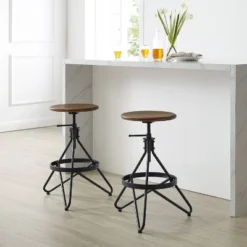 Set Of 2 Kalen Adjustable Height Swivel Barstools Brown/Matte Black – Crosley