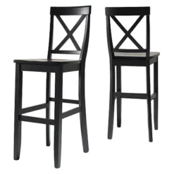 Set Of 2 29″ Upholstered Saddle Seat Barstools Vintage Mahogany – Crosley