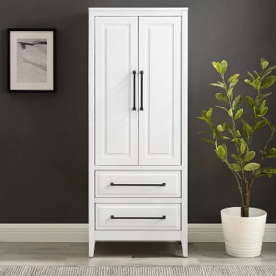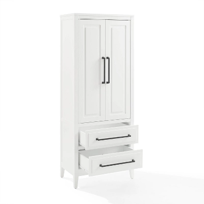 Versatile kitchen organization and storage with classic styling make the Genevieve Storage Pantry a perfect addition to your home. Featuring adjustable shelves and cable management holes, this freestanding storage cabinet accommodates everything from kitchenware to electronics. Two lower drawers offer ample storage for things like cooking utensils, office supplies, or even extra blankets. Scaled to fit any size room, this pantry is kitchen organization at its finest. Assembled dimensions 24” w x 14” d x 60” h
