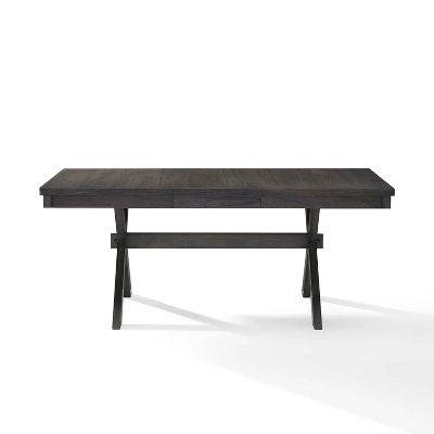Sure to be the focal point of your modern farmhouse decor, the Hayden Dining Table brings rustic style to family gatherings. Featuring an 18” extension leaf, this table expands to comfortably accommodate up to eight diners. The trestle base of the Hayden Dining Table showcases x-shaped legs, creating a sturdy structure sure to last for years to come.