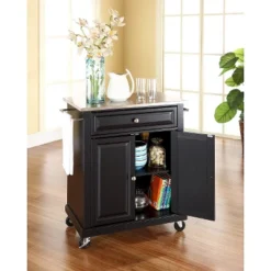 Portable Stainless Steel Top Kitchen Island Wood/Black – Crosley