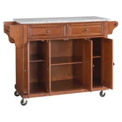 Solid Black Granite Top Kitchen Cart/Island With Optional Stool Storage – Classic Cherry – Crosley