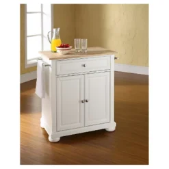 Alexandria Natural Wood Top Portable Kitchen Island – White – Crosley