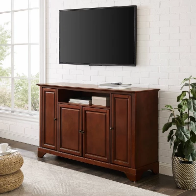 With the perfect fusion of function and style, this 60” TV Stand provides charm and plenty of storing options for your entertainment devices. Beautiful raised-panel doors strategically conceal various media paraphernalia, while adjustable shelving offers an abundance of versatility to effortlessly organize by design. Cord management systems help tame the unsightly mess of tangled wires. A warm hand-rubbed finish lends a contemporary look to this extraordinary piece of space-saving entertainment furniture.