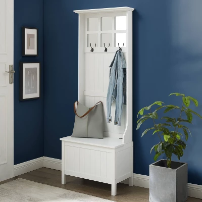 Add a touch of cottage charm to your foyer with the Plymouth Hall Tree. Classic beadboard accents and a windowpane mirror elevate this hall tree’s functional design. The lift-top bench keeps clutter at bay with its deep storage and soft-close hinge. With hooks for hanging coats and bookbags, the Plymouth Hall Tree makes coming home or heading out a breeze.
