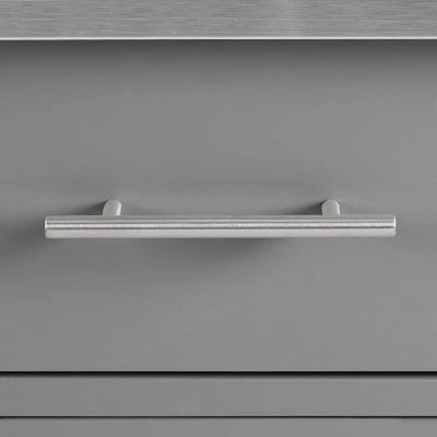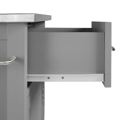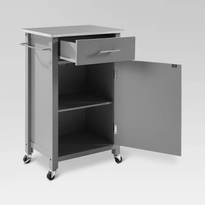 Organize your kitchen with the space-saving design of the Savannah Compact Kitchen Island/Cart. Ideal for adding extra storage and workspace, this island offers a sturdy stainless steel countertop and large cabinet with an adjustable shelf inside. The caster wheels on that base allow you to create a flexible food prep or serving space, while the full-extension drawer adds an ideal spot to tuck away everyday items. By adding a towel bar on one side and two utility hooks on the other, the Savannah Compact Kitchen Island addresses all your at-home chef needs.