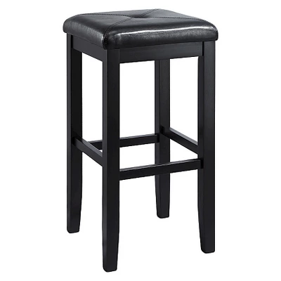 The Square 29″ Backless Bar Stool (Set of Two) from Crosley has button-tufted cushioned seats and is finely crafted from solid hardwood construction. The hand rubbed, multi-step finishing process puts the elegance in these traditional styled bar stools. The classic foot rail adds even more comfort. The seat height of this stool makes it perfect for 42″height dining tables or pub tables.